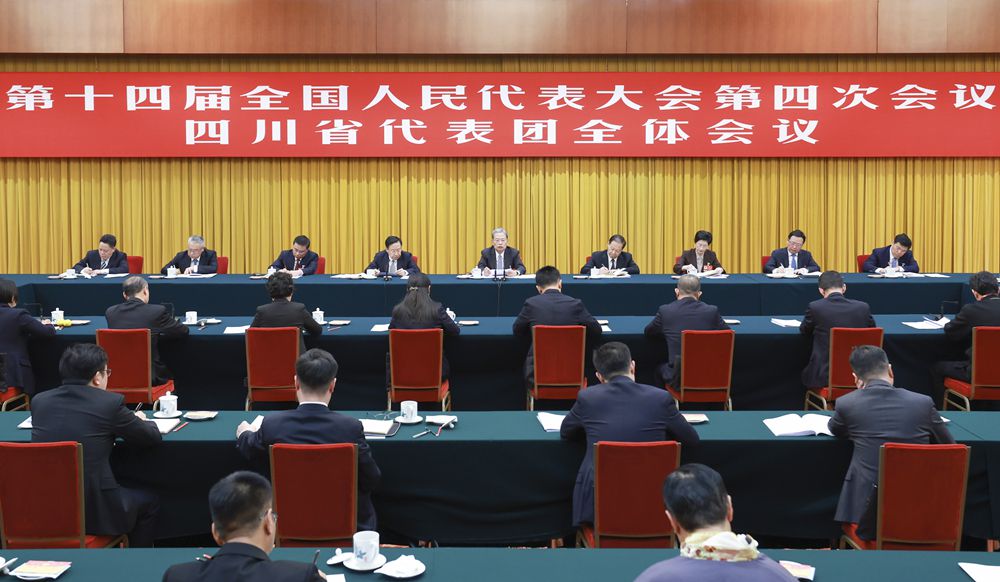 3月5日下午,中共中央政治局常委、全國(guó)人大常委會(huì)委員長(zhǎng)趙樂際參加他所在的四川代表團(tuán)審議。新華社記者 王曄 攝