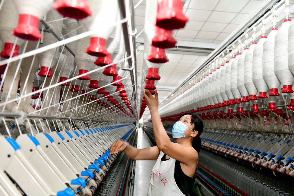 在山東省菏澤市鄆城縣藍(lán)翔紡織有限公司,工作人員在織機(jī)前忙碌(2025年3月12日攝)。新華社記者 郭緒雷 攝