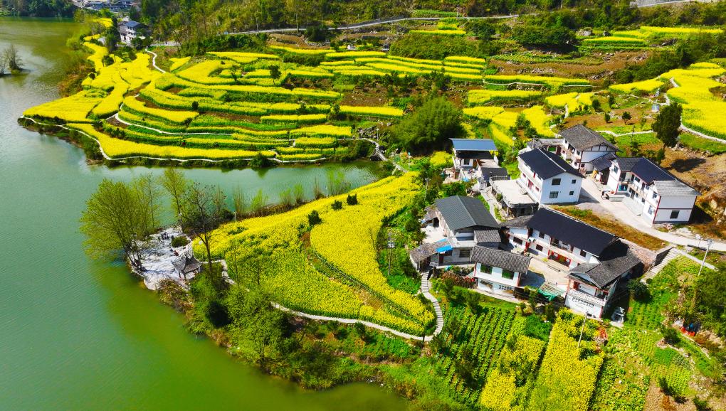 重慶市黔江區(qū)阿蓬江鎮(zhèn)大坪村油菜花開放(2026年3月4日攝,無(wú)人機(jī)照片)。新華社發(fā)(楊敏 攝)