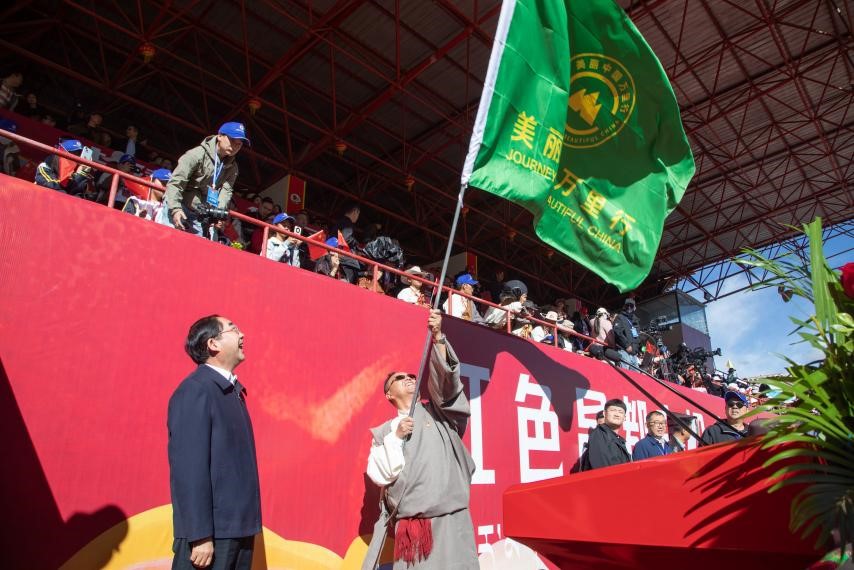 9月15日上午,中國(guó)風(fēng)景名勝區(qū)協(xié)會(huì)會(huì)長(zhǎng)、美麗中國(guó)萬(wàn)里行活動(dòng)組委會(huì)主任張永利向昌都市委副書(shū)記、市長(zhǎng)羅慶伍授予“美麗中國(guó)萬(wàn)里行”旗幟?;顒?dòng)由昌都市委副書(shū)記、常務(wù)副市長(zhǎng)李樹(shù)國(guó)主持。