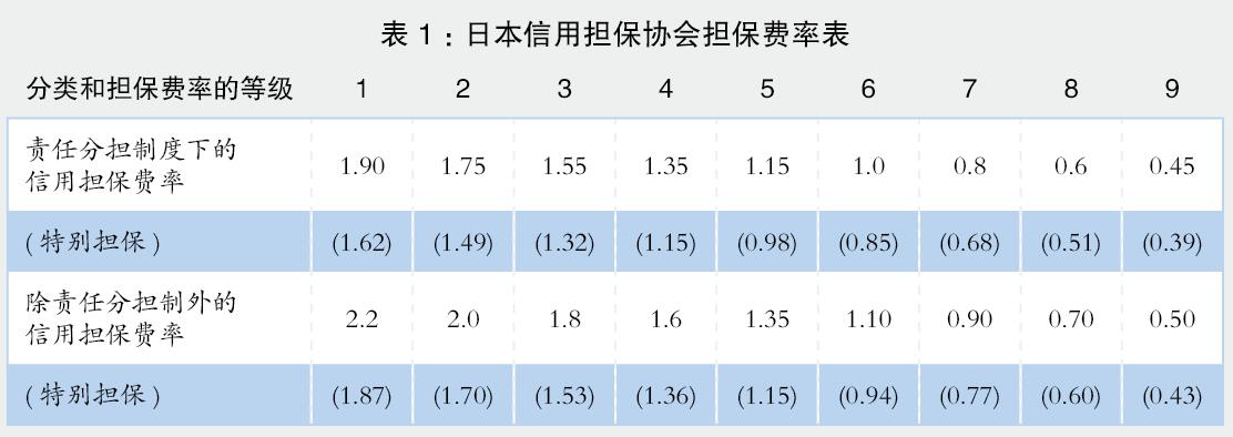 日本信用保證協(xié)會共有9種不同的擔(dān)保費率(見表1),企業(yè)投保的費率是由信用風(fēng)險數(shù)據(jù)庫(CRD)確定的。CRD建于2001年,該組織收集中小企業(yè)和小型企業(yè)的管理數(shù)據(jù)(財務(wù)/非財務(wù)數(shù)據(jù)和默認(rèn)信息),目的是通過數(shù)據(jù)判斷中小企業(yè)和小型企業(yè)的管理狀況,衡量與中小企業(yè)融資相關(guān)的信用風(fēng)險,使中小企業(yè)融資更加順暢和簡化。2009年6月,該組織更名為“ CRD協(xié)會”。